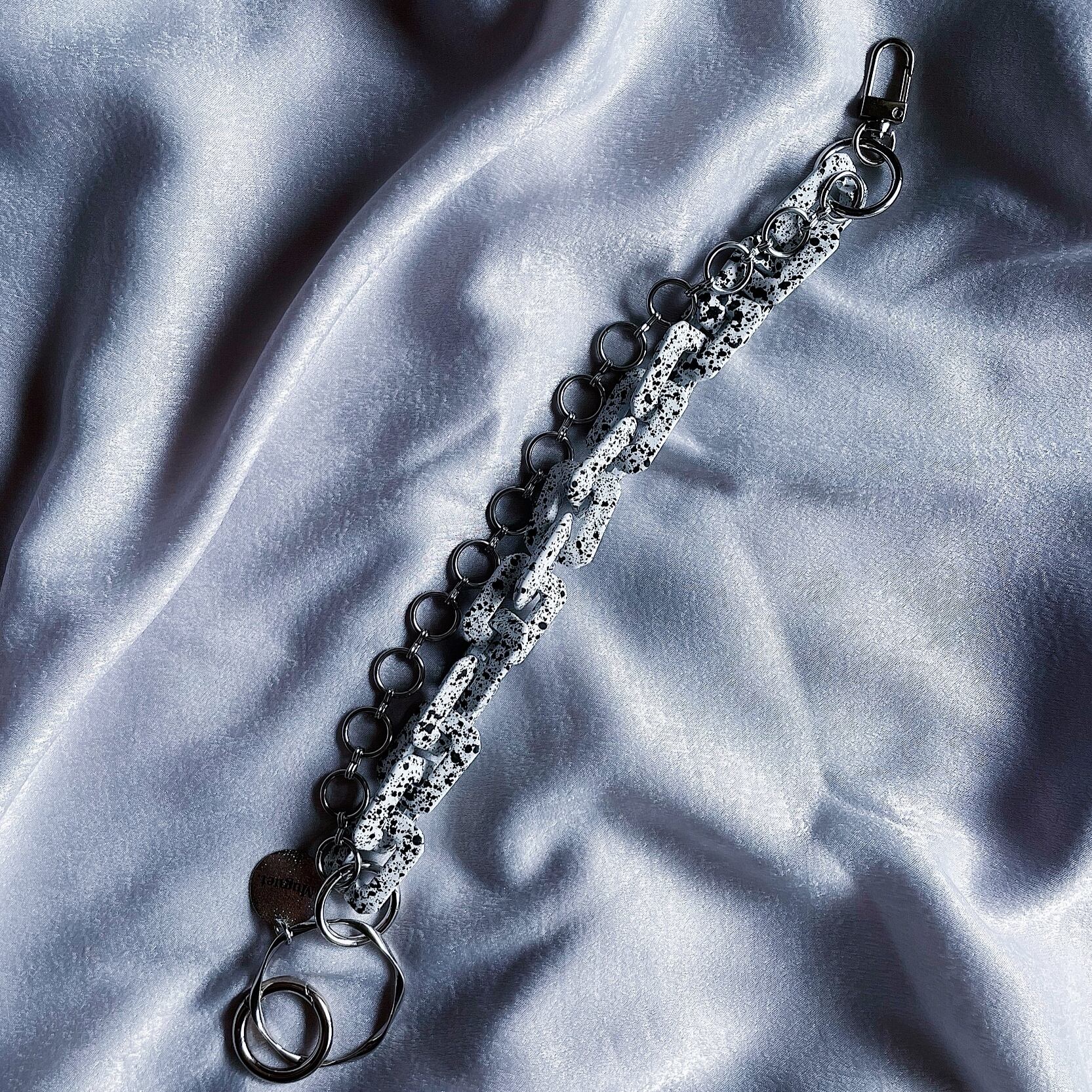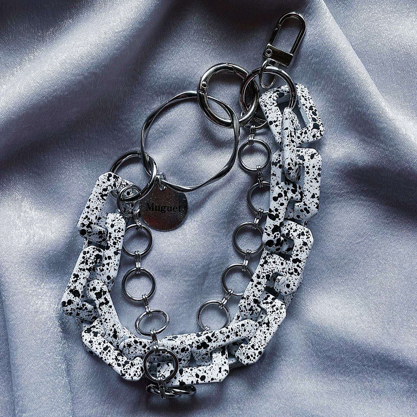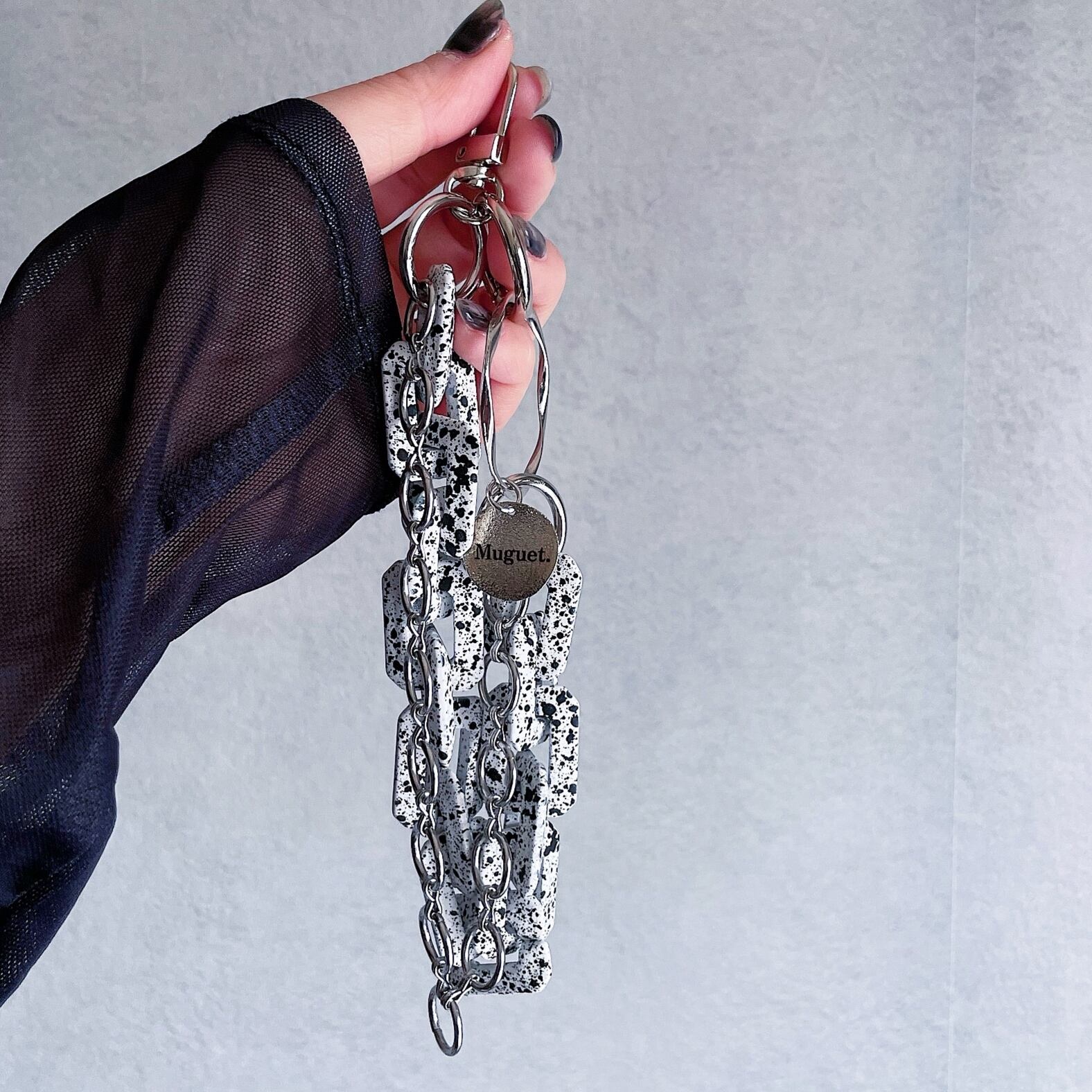 アクリルチェーンとステンレスチェーンの2連ハンドストラップになります。