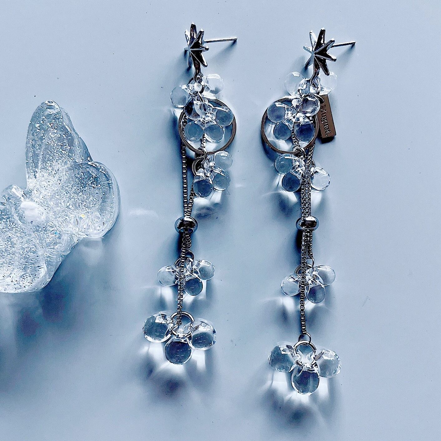 ぷるぷるのビーズがゆらゆら揺れる華奢ロングピアスになります。